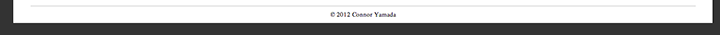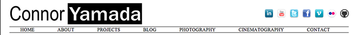 The header consists of three elements: the Connor Yamada logo, the social link icons, and the navigation bar for the website. Both the social link icons and the nav bar are covered in detail in the Dreamweaver tutorial series, which I then adapted slightly and styled. The logo was just something I whipped up quickly in Photoshop and haven’t really bothered to change. Together these elements form the header div on v2 and is present on each page.