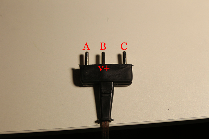 Newfile1iHaving solved the issue of the voltage supply à la joule thief, the test circuit is then a simple matter of wiring up three pins to connect to a body cord and then foil or epee. IMG_9712Above is a photo of the body cord that will be connected to the pins in the test box (the test box whose housing needs to be made). The middle pin (B) is connected to the collector of the 3904. The left pin (A) is then connected to a green LED whose cathode is connected to the emitter or the 3904, such that when the circuit is closed the LED will turn on (the weapon is working). The same is done for the right pin (C) with a second LED. Thus completes the wiring component of the test box, I’ll cover the housing in another post when the fab shop reopens.